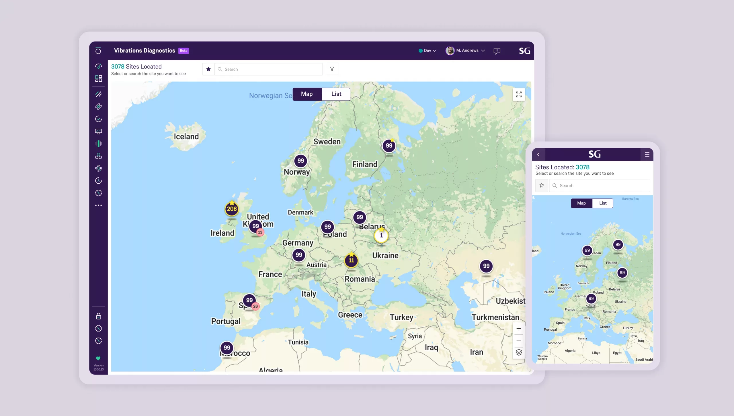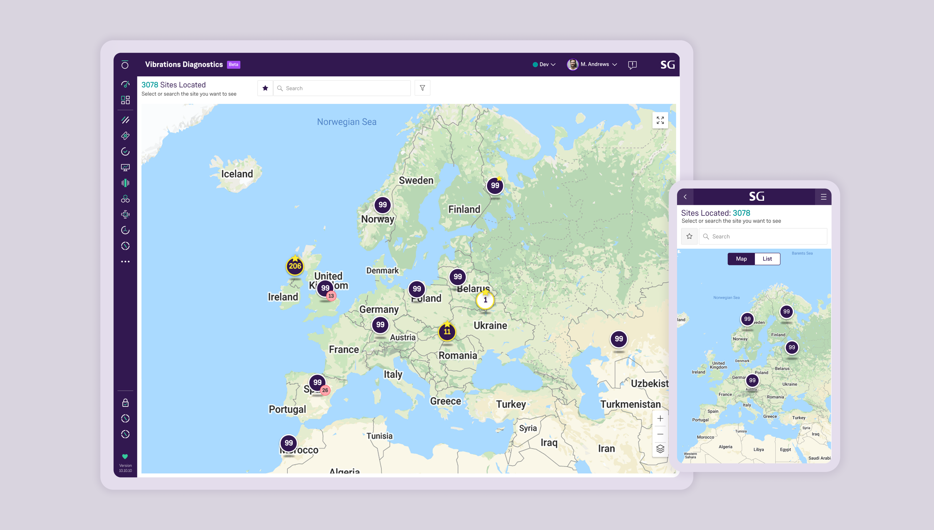 Based on our research insights, we designed a centralized dashboard for both desktop and mobile, making complex vibration data intuitive and actionable for field technicians and office analysts.